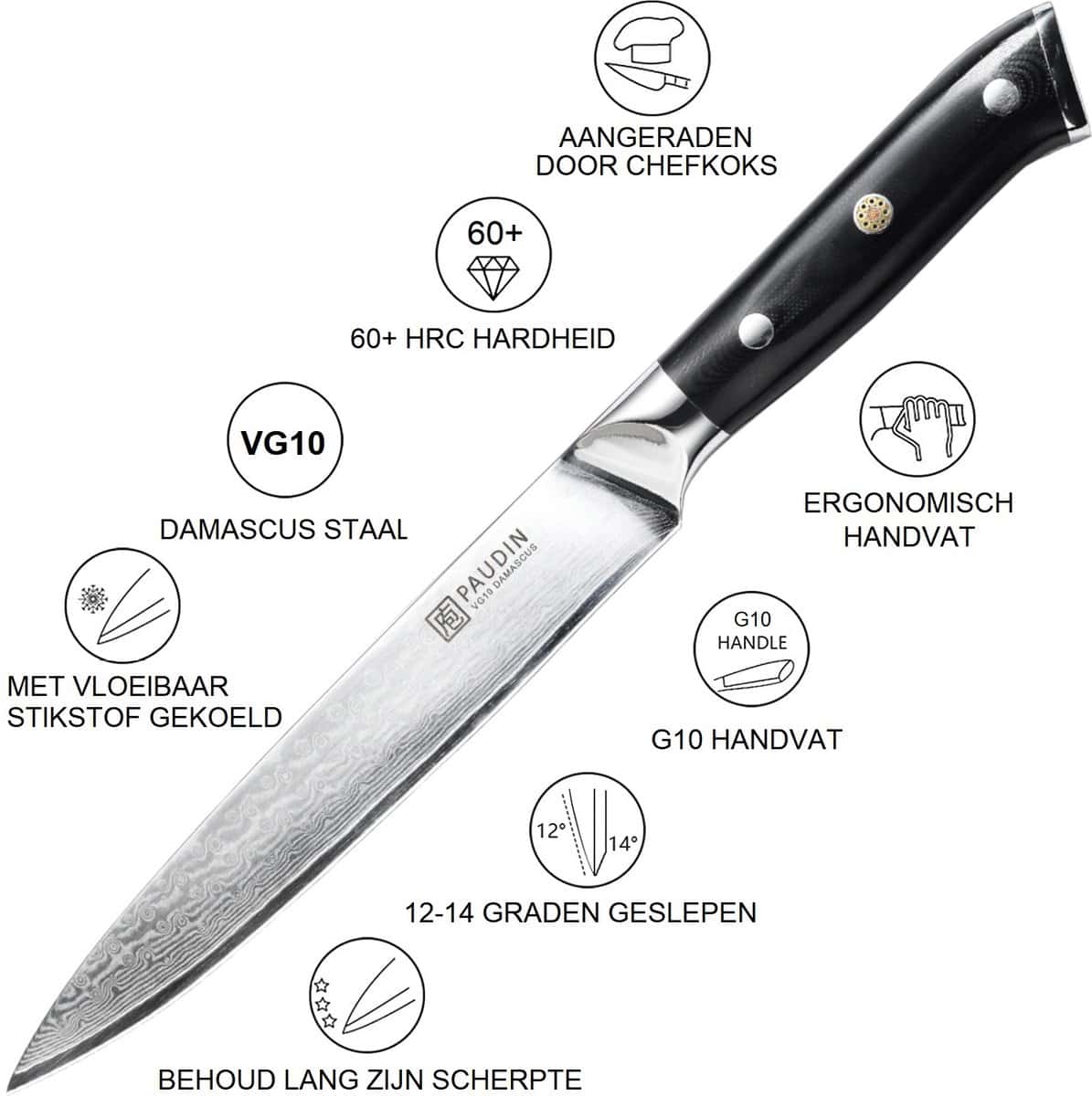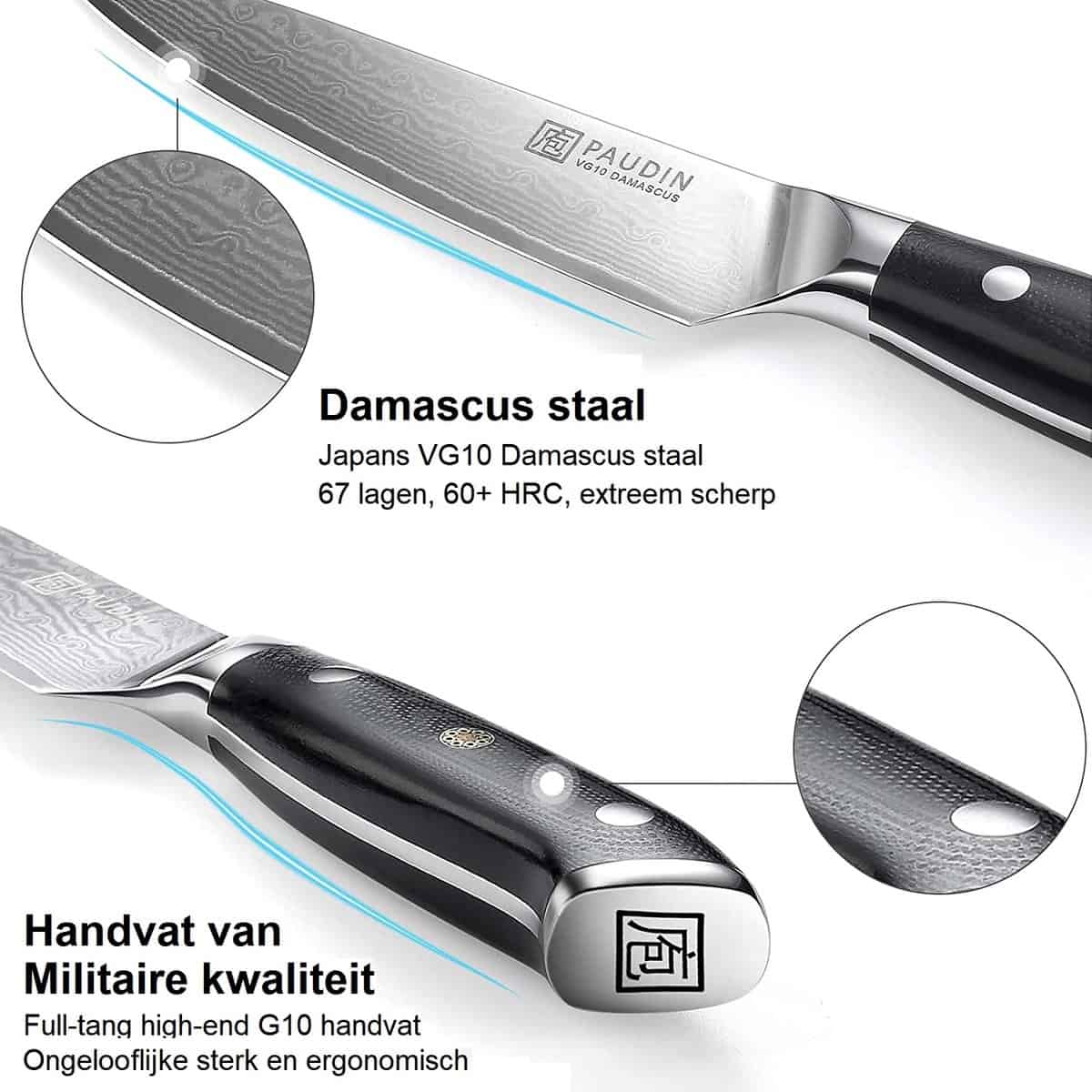 • Hoogwaardig Japans Damaststaal met VG-10 kern voor optimale snijprestaties