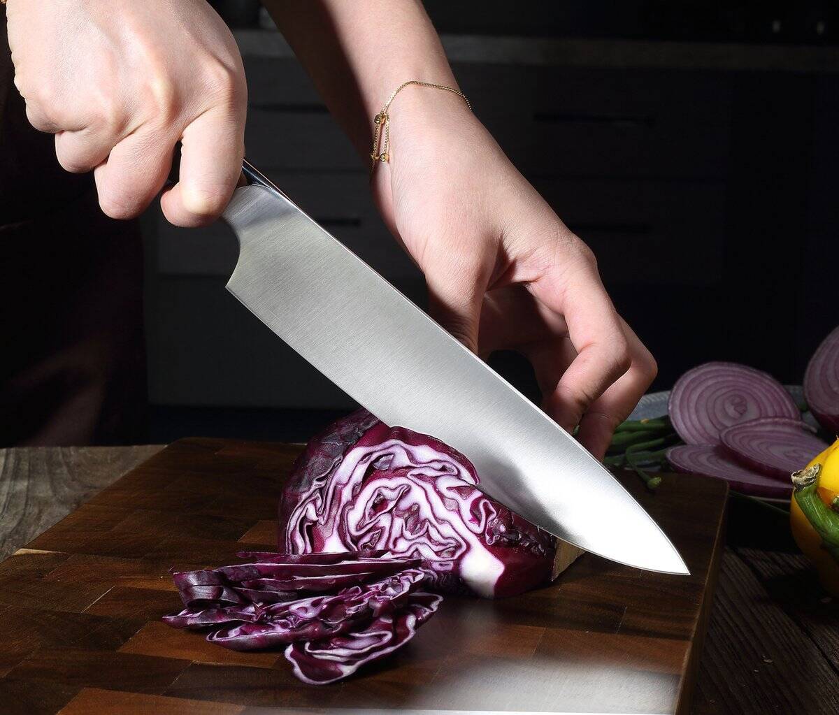- Ongeëvenaarde snijprestaties: moeiteloos snijden door vlees, groenten, fruit en kruiden en met het premium Paudin D1 kookmes gaat dat bijzonder goed.