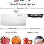 Ontdek de veelzijdigheid van het Paudin Ultra Dark Premium D4 Chinees Koksmes (geen hakmes). Deze vlijmscherpe keukenhulp is een echte allrounder, gefabriceerd uit hoogwaardig roestvast Carbonstaal. Met zijn ergonomisch handvat van premium G10 en een lemmet van 18 cm biedt dit professionele koksmes een perfecte balans tussen comfort en precisie. Laat je verbazen door zijn prestaties, zowel bij het fijne delicate maar ook bij het zwaardere robuustere snijwerk.