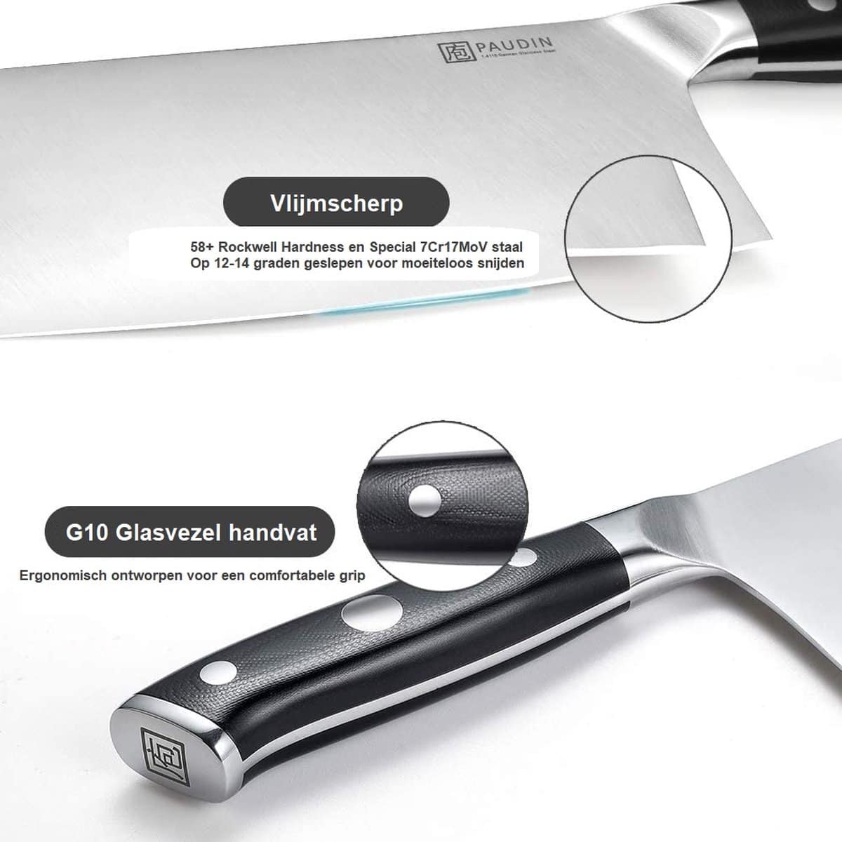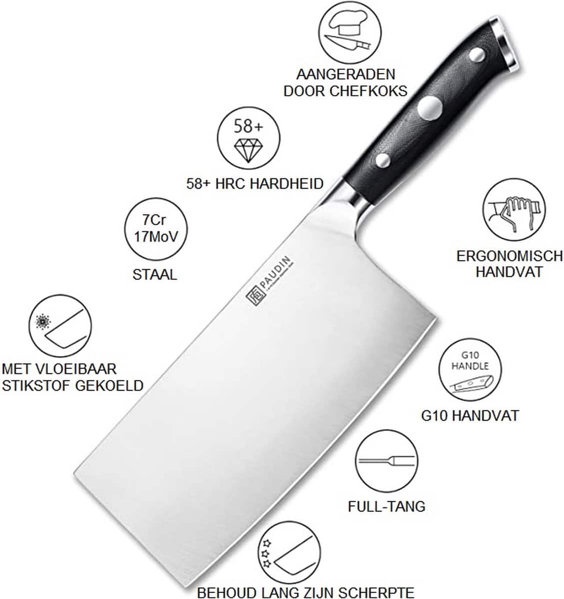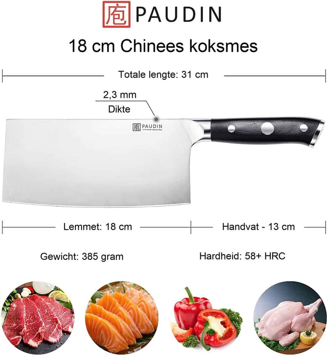 - Professionele kwaliteit, ideaal voor het snijden van harde groenten, het losmaken van kippenvleugels en nog veel meer