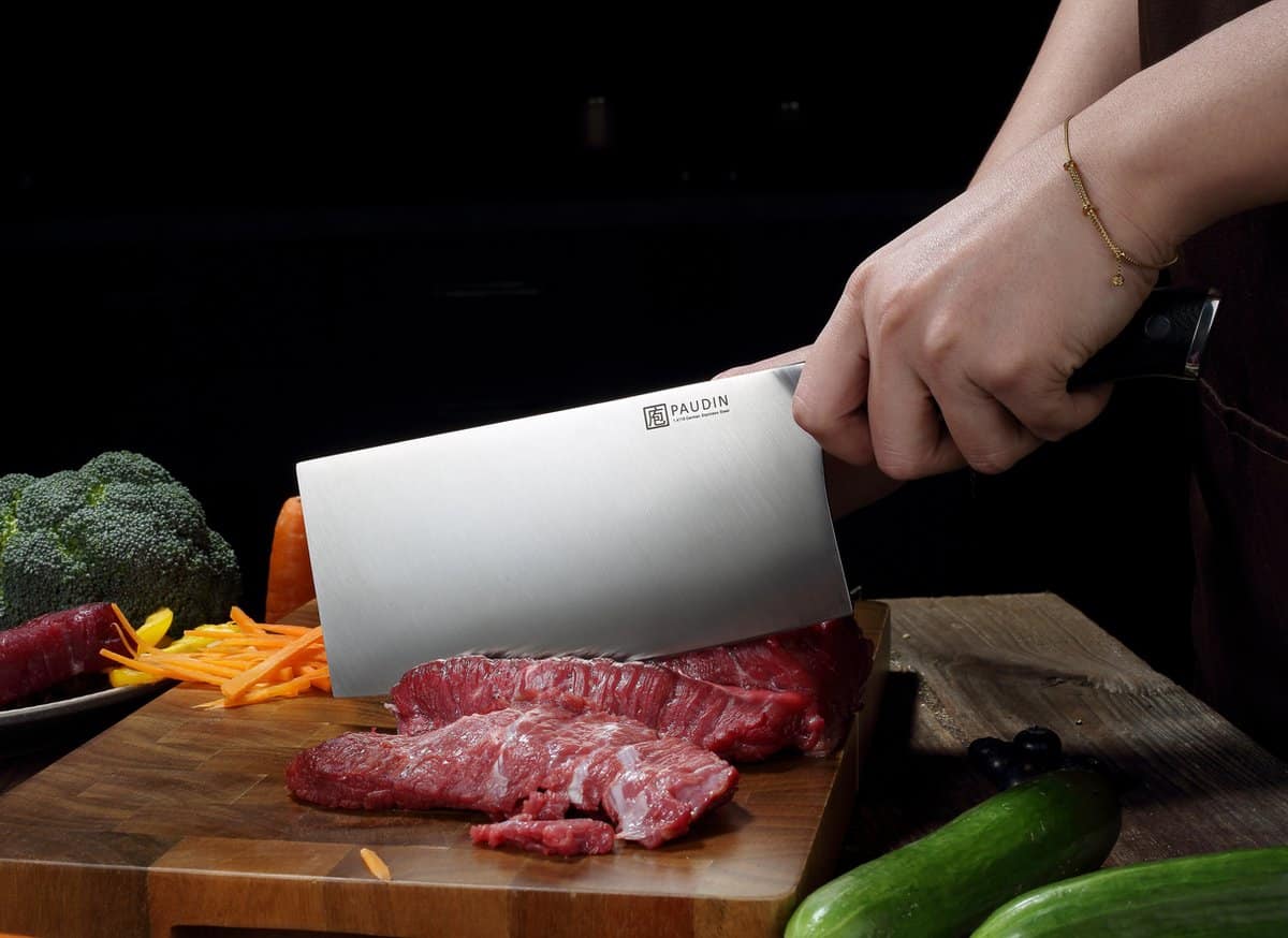 Een Chinees koksmes is helaas geen hakmes, daar is deze te verfijnd voor geslepen. NIET GESCHIKT VOOR BEVROREN VLEES/GROENTE EN BOT.