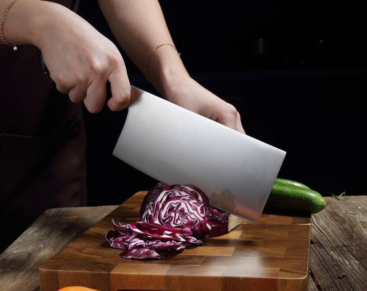 - Een veelzijdig Chinees Koksmes dat geschikt is voor bijna elke snijklus