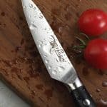 Het D7 schilmes bevat een extra hoog gehalte aan chroom, molybdeen en vanadium bevat. Dit resulteert in een zeer hoge corrosiebestendigheid en verhoogt de algehele sterkte, slijtvastheid en taaiheid van het mes, elementen die zorgen voor de ultra-scherpe eigenschappen van het D7 Groentemes.