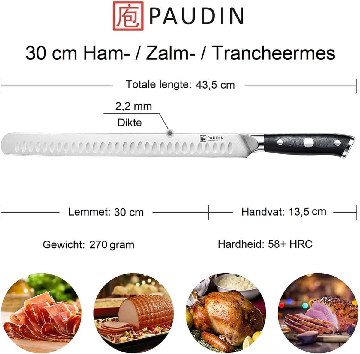 • Perfect gebalanceerd voor gemakkelijk en precies snijden, ideaal als trancheermes