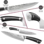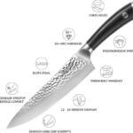 Dit gehamerde mes van hoogwaardig roestvast koolstofstaal combineert vlijmscherpe precisie met uitzonderlijke duurzaamheid. Met dit mes snijd je moeiteloos vlees, vis, groenten en fruit. Dankzij de perfecte balans en het ergonomische handvat ligt het comfortabel in de hand. Het biedt optimale controle bij elke snijbeweging. Of je nu een professionele chef bent of een gepassioneerde hobbykok, het Hammered Pro HP1 Koksmes is een onmisbaar hulpmiddel in elke keuken.