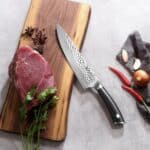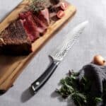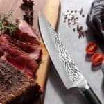 Onderdeel van de Hammered Pro collectie: een krachtig koksmes met opvallend gehamerd lemmet en een robuuste, professionele uitstraling.