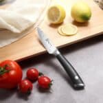 Ontdek het Hammered Pro HP6 Groentemes, met een lemmet van 9 cm, uit de Hammered Premium serie. Vervaardigd uit hoogwaardig roestvast Koolstofstaal en met een uniek hamer patroon, is dit keukenmes niet alleen een blikvanger, maar ook een uiterst nuttige hulp in de keuken. Het perfecte cadeau tip voor zowel de professionele chef als de hobbykok!