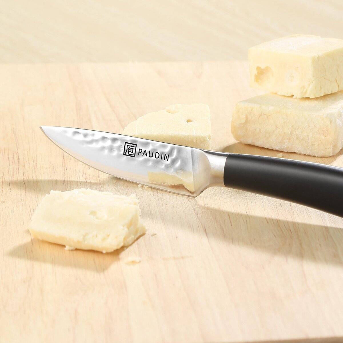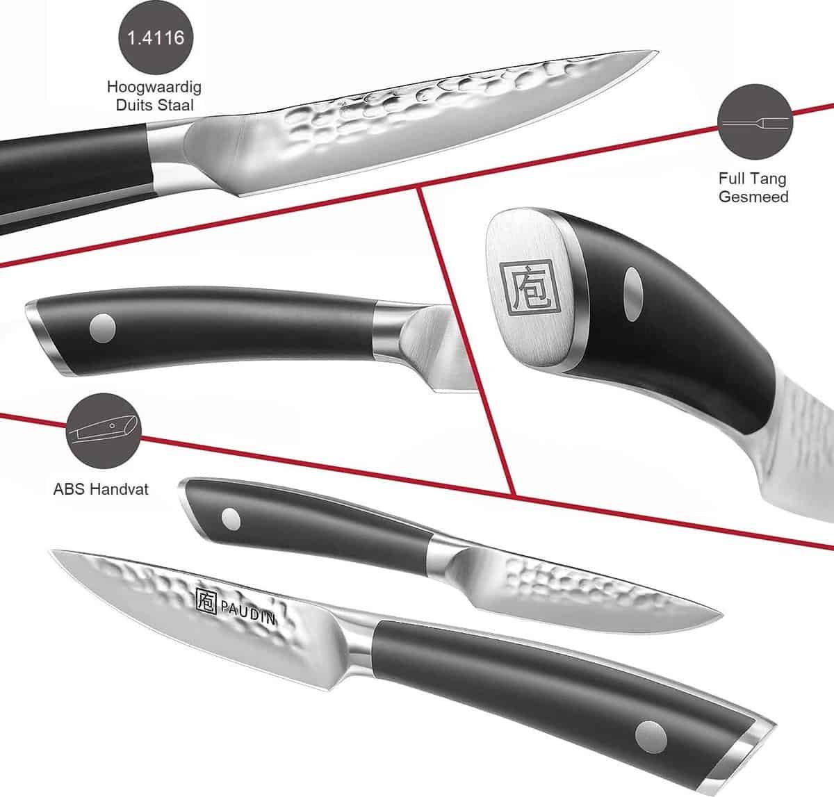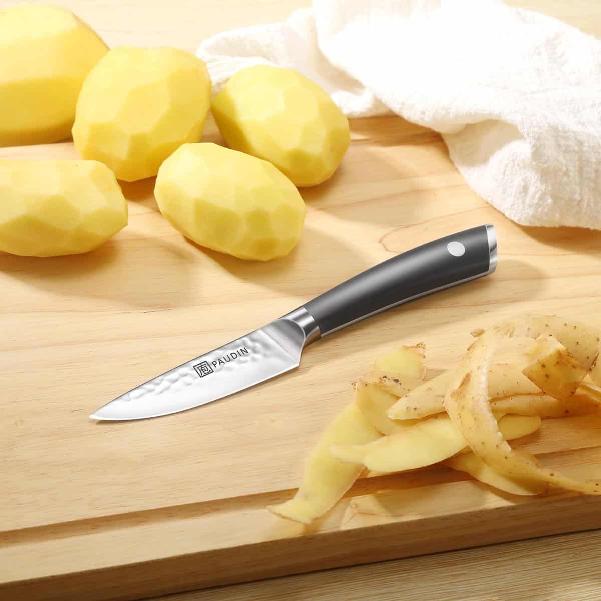 Vervaardigd uit hoogwaardig koolstofstaal (HRC 56+) en uitgevoerd met een ergonomisch handvat, perfect voor fijn snijwerk, schillen en het voorbereiden van kruiden.