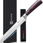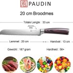 Het stijlvolle Damascus patroon op deze Universal N4 Broodmes / Banketmes verleent een esthetisch tintje aan dit onmisbare keukenaccessoire. Een perfect cadeau-idee voor elke kookliefhebber. Ervaar de perfectie van snijden met geweldige broodmes van Paudin.