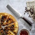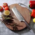 Dit nakirimes is ontworpen met een ergonomisch en antislip handvat van luxe pakkahout, voor een comfortabele en veilige grip tijdens het snijden. Het mes is goed gebalanceerd en niet te zwaar, waardoor je het gemakkelijk en zonder vermoeidheid kunt gebruiken. Het prachtige Damascus patroon dat in het staal is gelaserd, maakt dit mes tot een echte blikvanger in je keuken.