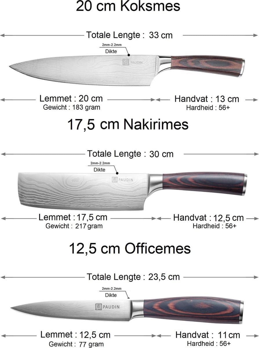 - Set bestaat uit: N1 Koksmes, N6 Nakirimes, N7 Officemes