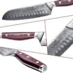 Het handvat van military grade G10 glasvezel is bestand tegen vocht, hitte en slijtage. Samen met het verfijnde vederpatroon maakt dit het P4 Santoku Mes zowel een visueel hoogstandje als een functioneel gereedschap dat jarenlang meegaat.
