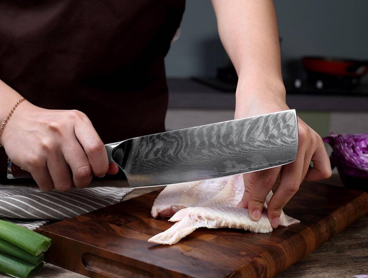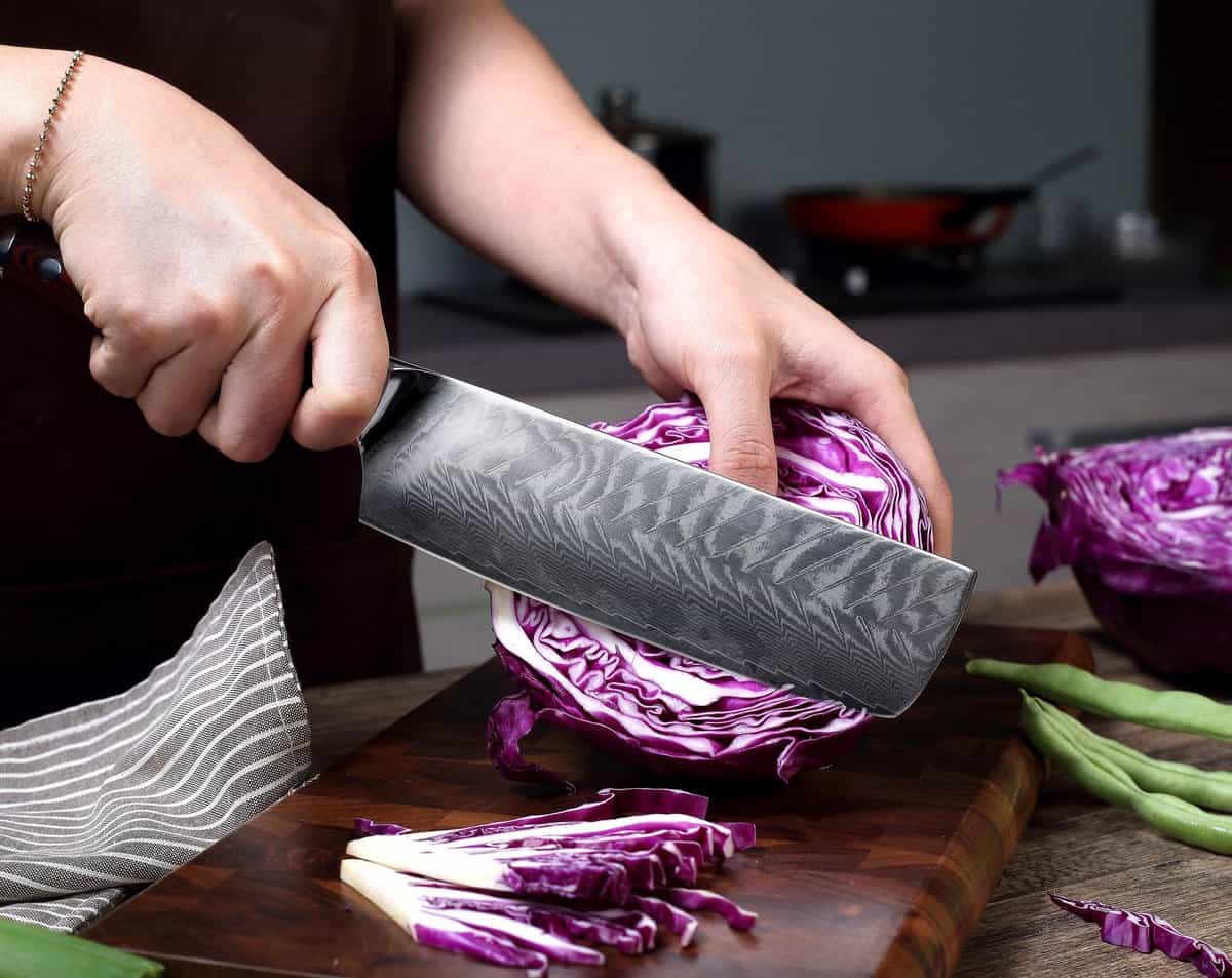 Het lemmet van het Plume Luxe P5 Nakiri Mes is opgebouwd uit 67 lagen damaststaal met een sterke VG-10 kern. Dit hoogwaardige staal is beroemd om zijn scherpte, slijtvastheid en roestbestendigheid. Door cryogene harding behoudt het mes langdurig zijn extreme scherpte, ook bij dagelijks gebruik.