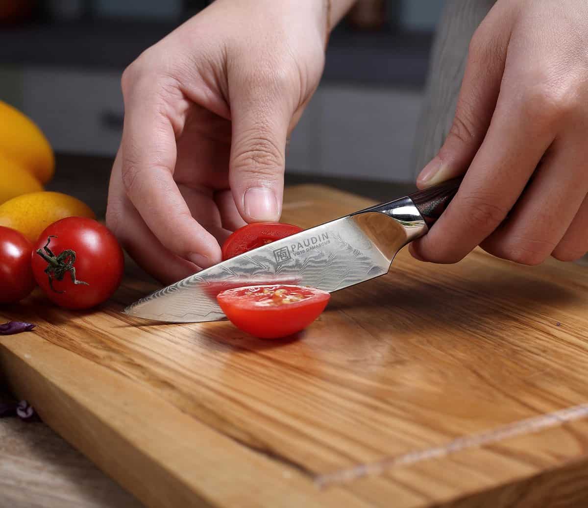 Met het Paudin Plume Luxe P7 Groentemes kies je voor een compact Japans Damascus schilmes dat luxe, scherpte en duurzaamheid combineert – perfect voor precisiewerk in de keuken.