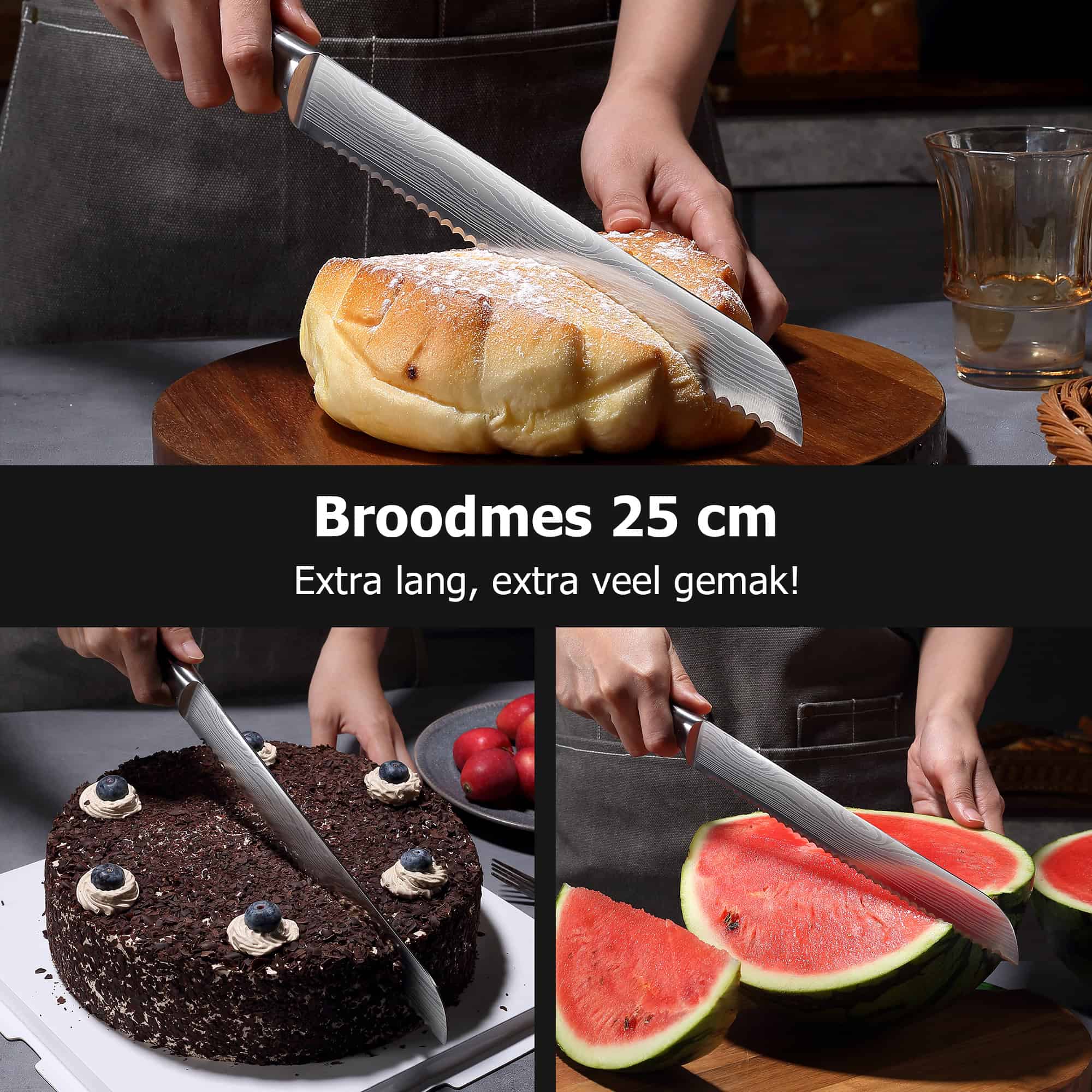 - Extra lang 25 cm lemmet, ideaal voor groot brood, taarten en watermeloen