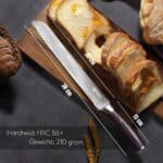 Dankzij de slijtvaste constructie en het gelaserde damascuspatroon behoudt het mes niet alleen zijn prestatie, maar ook zijn elegante uitstraling, een sieraad voor elke keuken.