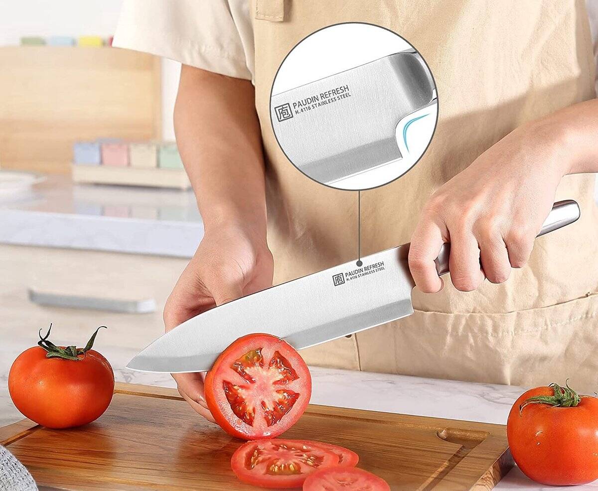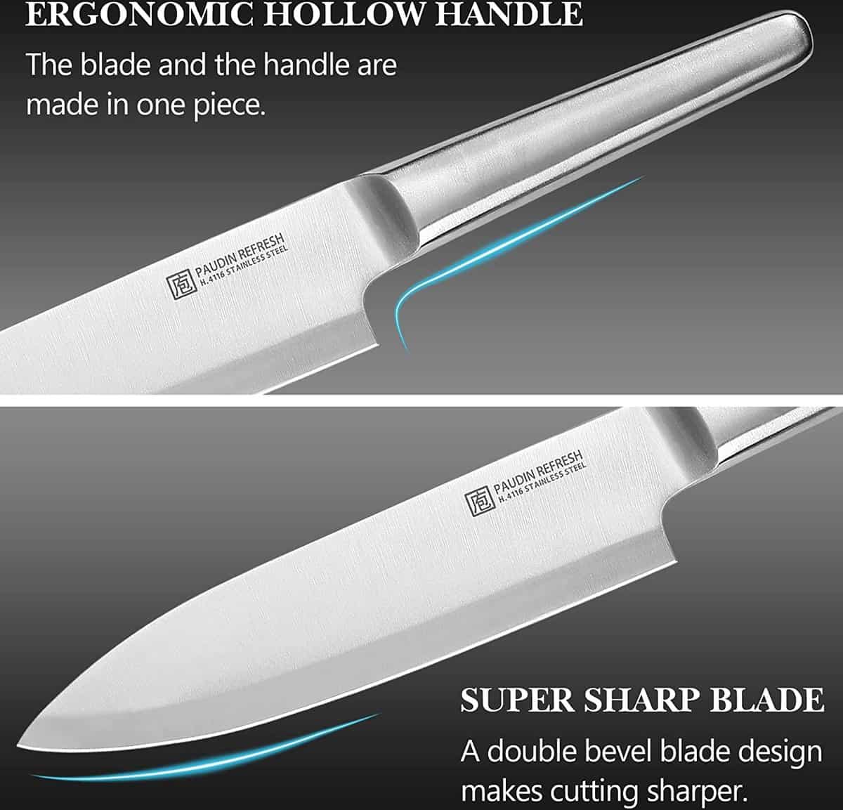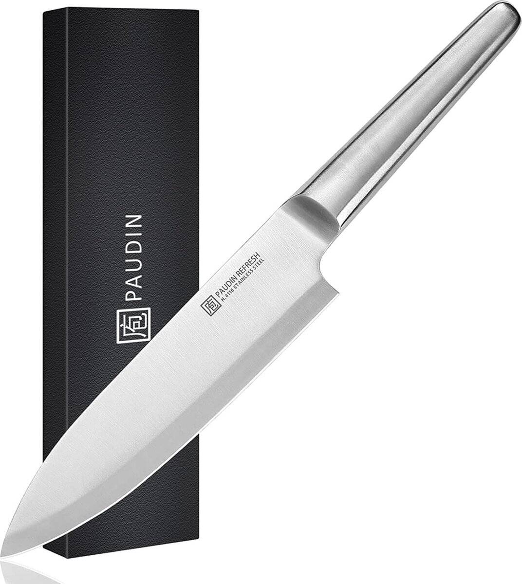 Dit R1 koksmes van Paudin combineert functionaliteit, duurzaamheid en een modern design. Het mes is uit één stuk vervaardigd, wat zorgt voor extra hygiëne. Hierdoor zijn er geen plekken waar bacteriën zich kunnen nestelen. Daarnaast zorgt het ergonomische handvat voor een comfortabele grip, wat efficiënter en veiliger snijden mogelijk maakt. Dit professionele koksmes is een onmisbare tool voor elke keuken.