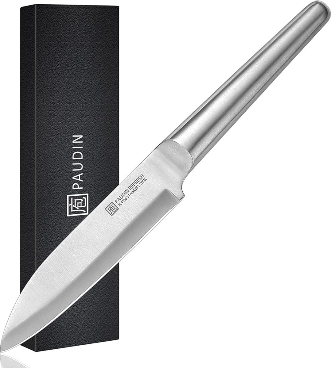 Vervaardigd uit hoogwaardig koolstofstaal (HRC 56+) en uitgerust met een comfortabel handvat, ideaal voor precisiewerk zoals fijn snijden, schillen en voorbereiden van kleinere ingrediënten.