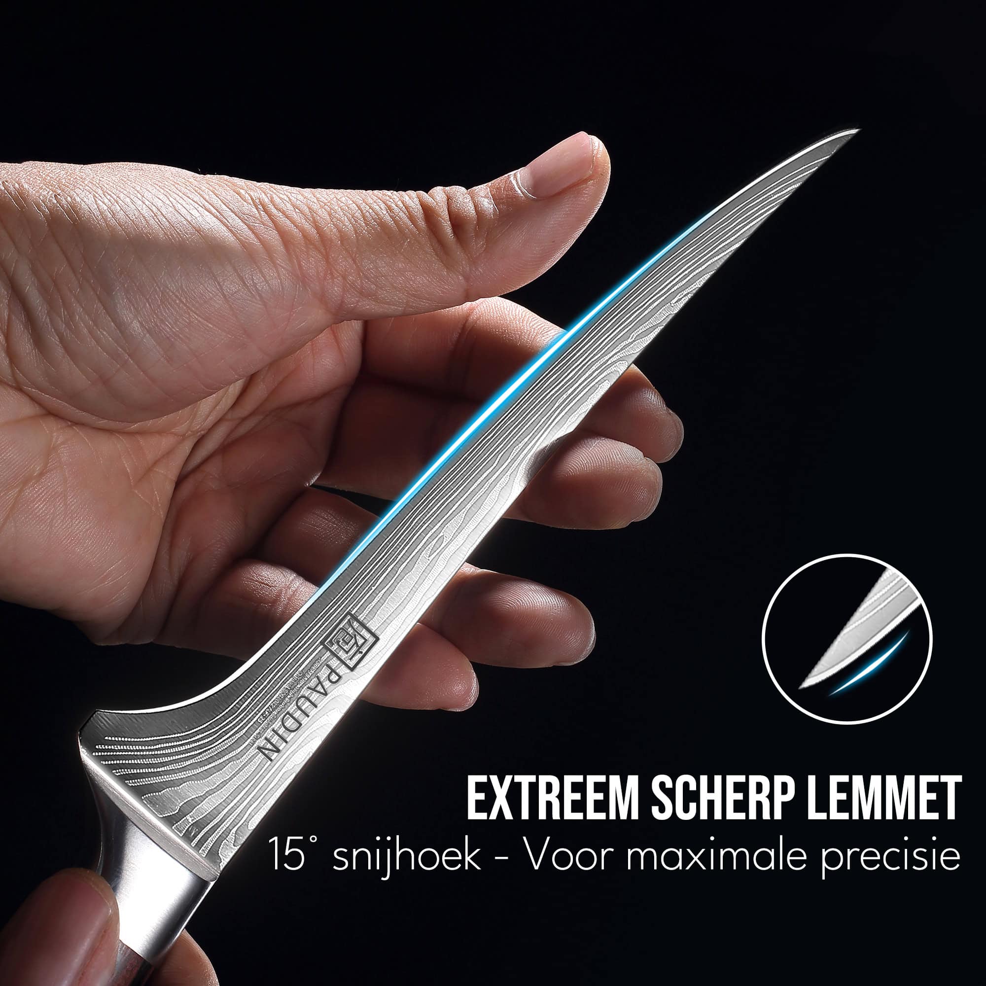 - Slijpwijze: Japans geslepen, hoek van 14–16 graden per zijde