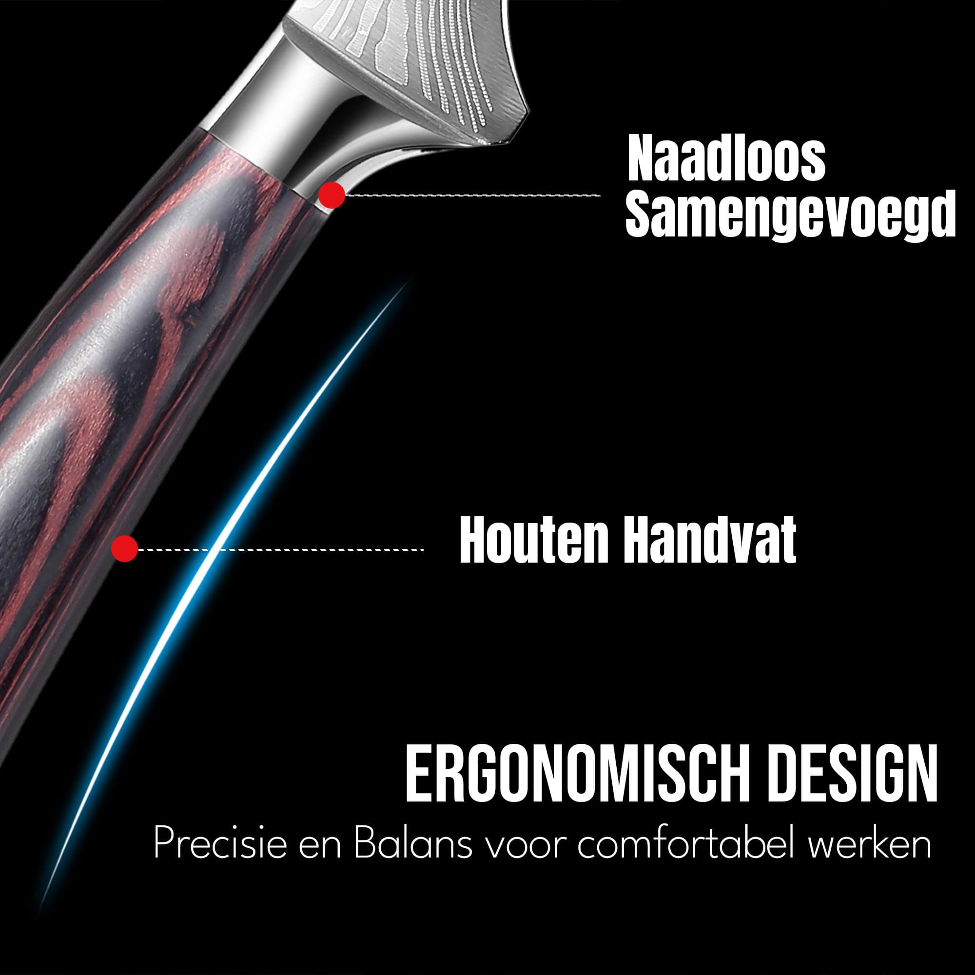 - Ergonomisch pakkahouten handvat voor een comfortabele en veilige grip.