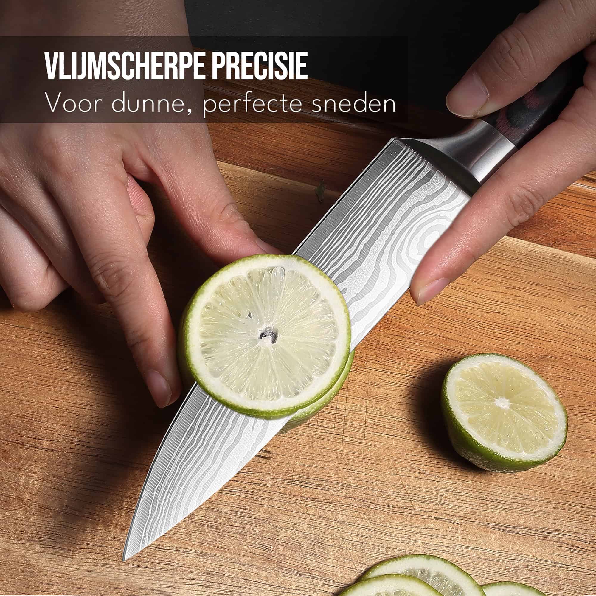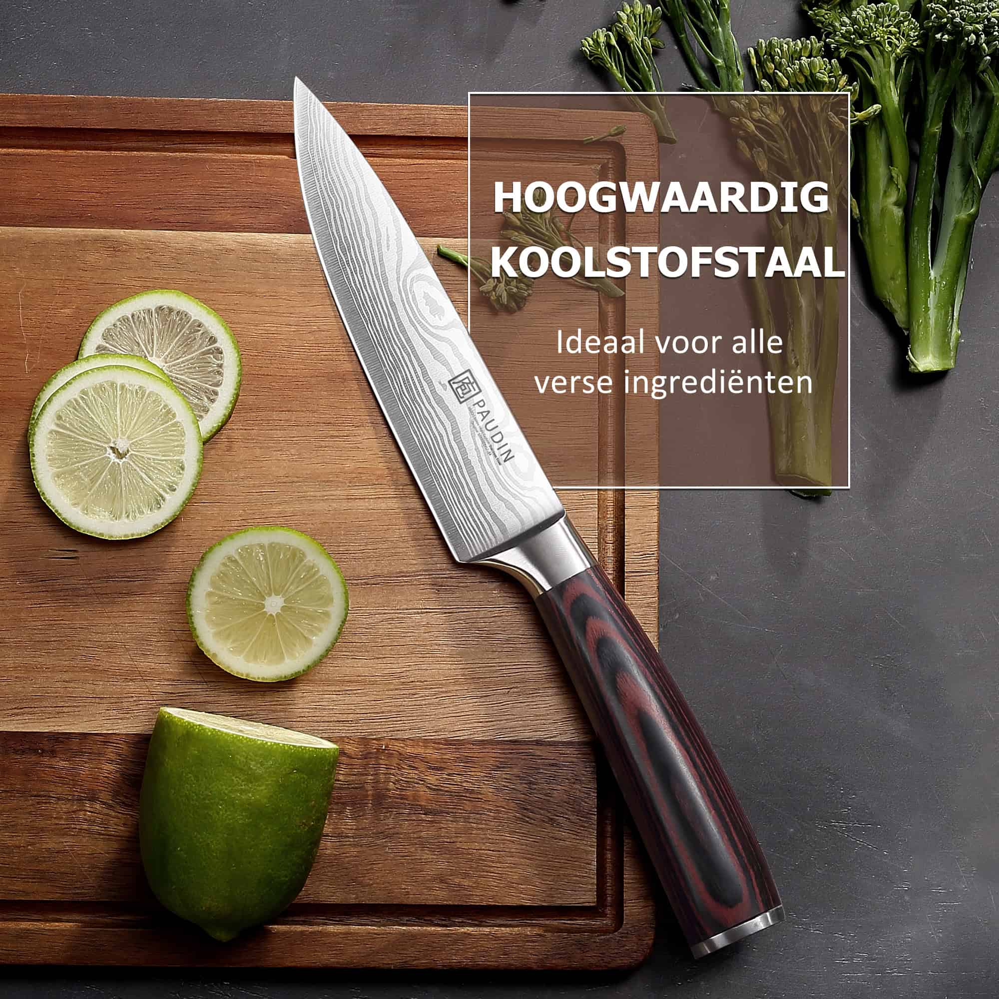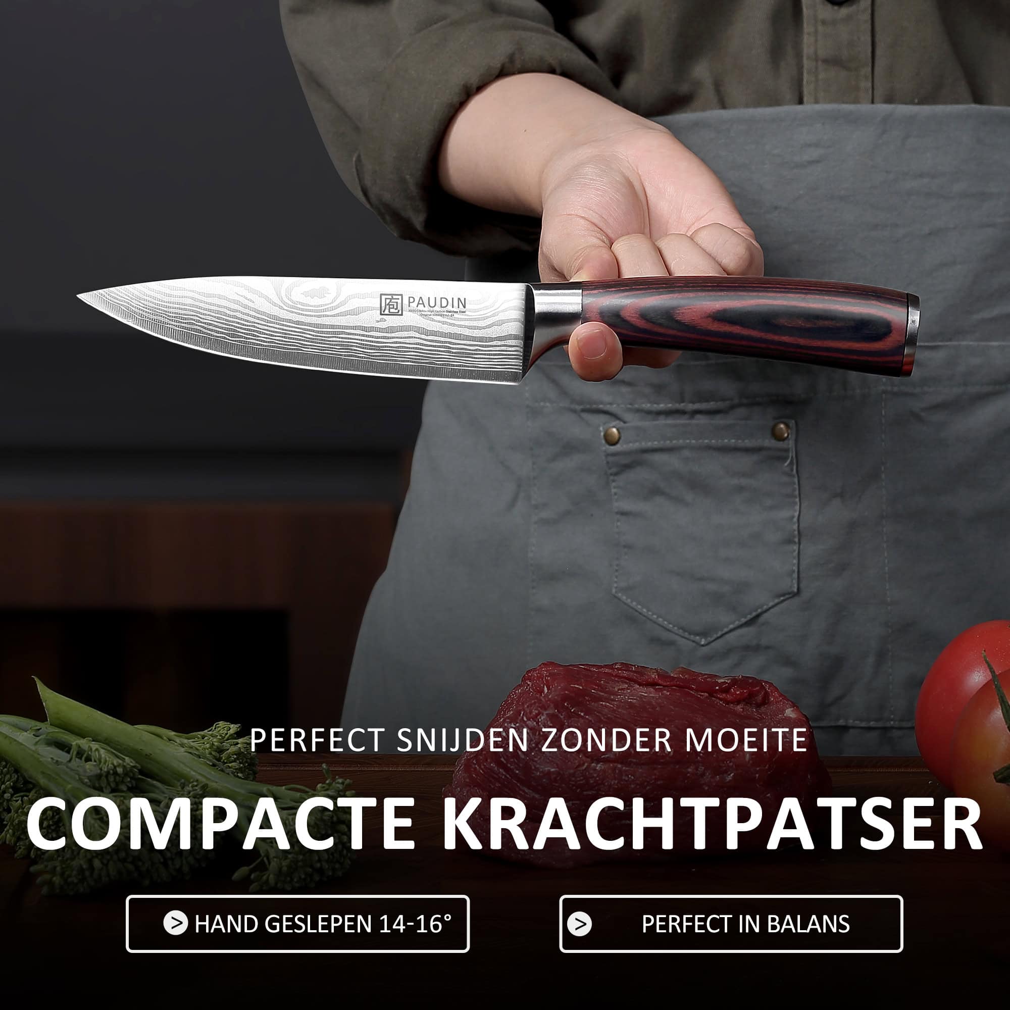 Het Universal N27 Koksmes is niet alleen functioneel, maar ook een lust voor het oog. Het gelaserde damascus patroon geeft het mes een luxe uitstraling, terwijl het ergonomische handvat zorgt voor een natuurlijke grip. Dit compacte koksmes is perfect uitgebalanceerd, waardoor je met gemak en precisie kunt werken, zelfs bij langdurig gebruik. Maak van elke maaltijd een meesterwerk met dit stijlvolle en krachtige keukenmes.
