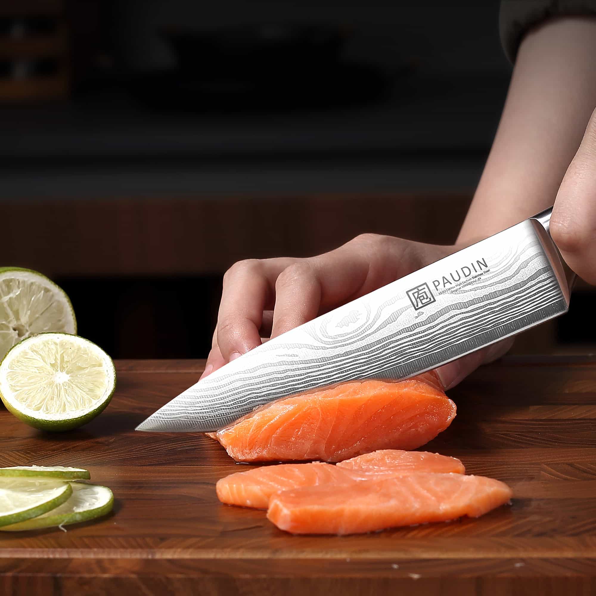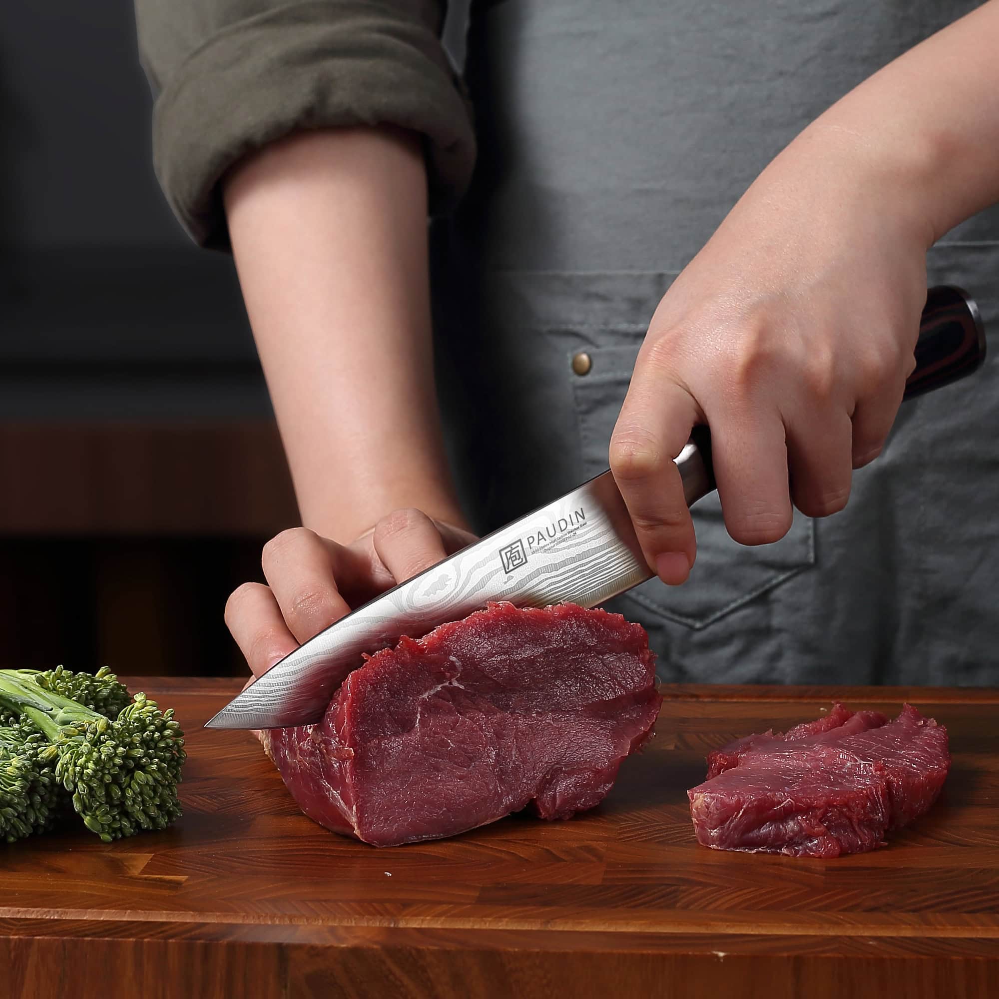 Vervaardigd uit cryogeen gehard koolstofstaal (HRC 56+) en voorzien van een ergonomische pakkahouten handgreep, ideaal voor dagelijks snijwerk waarbij wendbaarheid en controle belangrijk zijn.