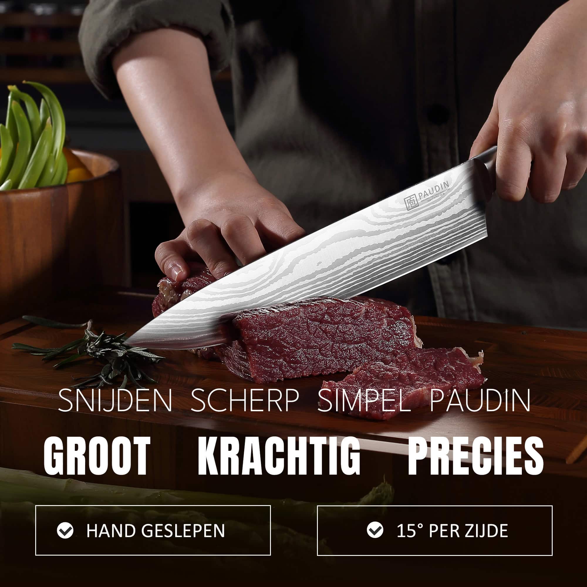 Ter conclusie: Gun jezelf de luxe van het Paudin N28 Koksmes – het perfecte keukenmes dat kracht, precisie en elegantie verenigt voor elke chef.